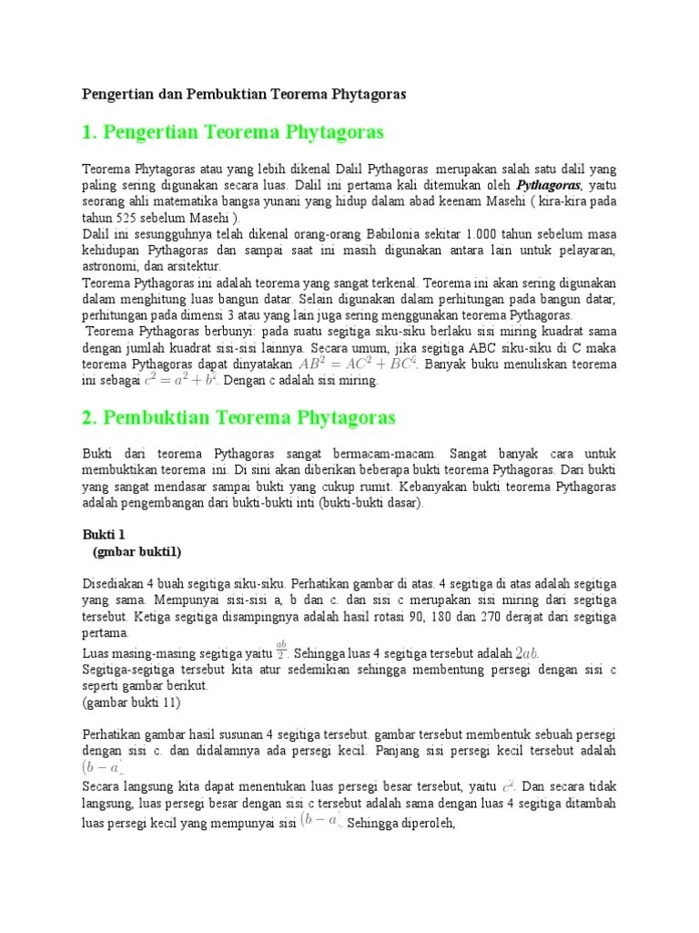 Oct 01, 2016 · pythagoras dilahirkan di sebuah pulau bernama samos, sebuah pulau di yunani pada tahun 570 sebelum masehi. Mengapa teorema phytagoras sangat terkenal? Jun 13, 2021 · teorema phytagoras ini sangat terkenal dalam bidang geometri. Kurang lebih 2500 tahun yang lalu seorang filsuf yunani bernama pythagoras menemukan fakta menarik tentang segitiga. Selama perjalanannya, dia mengumpulkan ilmu dari peradaban tempat dia berkunjung. Teori pythagoras jumlah area dari dua persegi pada kaki (a dan b) sama dengan luas persegi pada sisi miring (c). Dan terus dipakai pada tingkatan berikutnya. Teorema ini pertama kali dikemukakan oleh seorang matematikiawan yang berasal dari yunani bernama phytagoras. In mathematics, the pythagorean theorem, or pythagoras's theorem, is a fundamental relation in euclidean geometry among the three sides of a right triangle.it states that the area of the square whose side is the hypotenuse (the side opposite the right angle) is equal to the sum of the areas of the squares on the other two sides. Mar 15, 2016 · mencoba mengolah, dan menyaji dalam ranah konkret (menggunakan, mengurai, merangkai, memodifikasi, dan membuat) dan ranah abstrak (menulis, membaca, menghitung, menggambar, dan mengarang) sesuai dengan yang dipelajari di sekolah dan sumber lain yang sama dalam sudut pandang/teori x kompetensi inti ( home ) profil evaluasimaterikurikulum peta konsep More images for teori phytagoras » Apakah rumus phytagoras merupakan rumus? Apakah teorema pythagoras merupakan simbol kemustahilan?