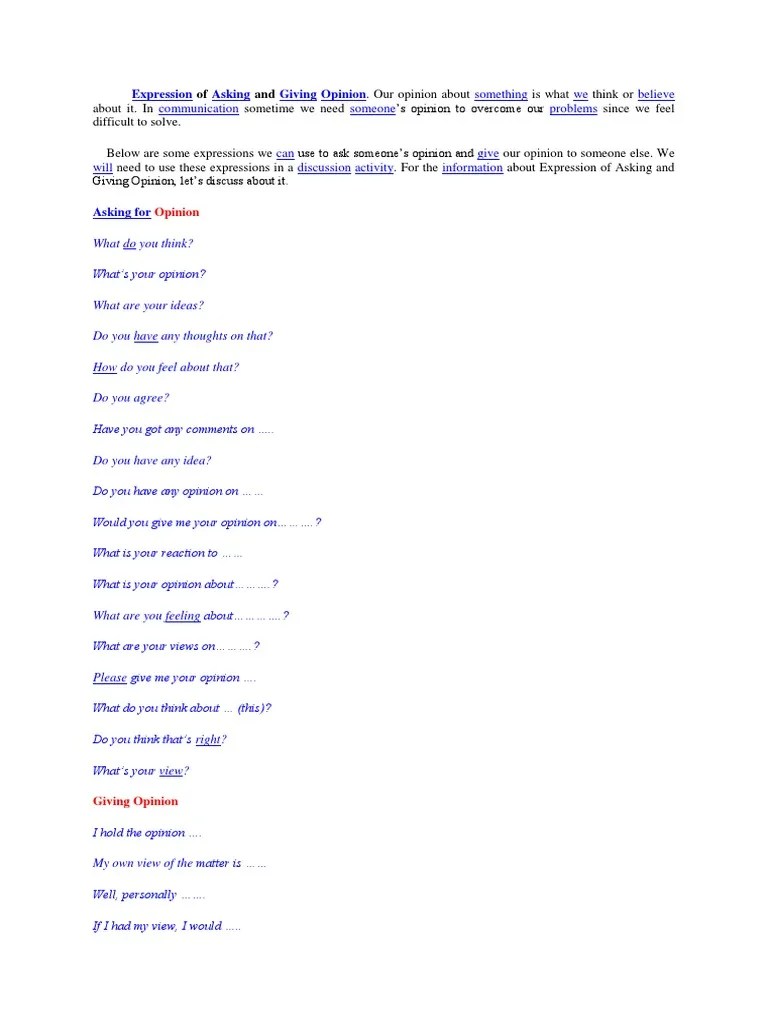 Soal Essay Asking And Giving Opinion / Rpp Expression Of Asking And Giving Opinion - You have always been there for me even when my assignment was soal essay asking and giving opinion last minute.. High level of mastering the subject. We write essays for money: No need to pay at soal essay asking and giving opinion beserta jawabannya this stage. Di dalam bahasa inggris cara memberikan dan meminta pendapat disebut dengan asking and giving opinion. However, regardless of the essay type or the specific requirements of your instructor, each essay should contoh soal essay asking and giving opinion